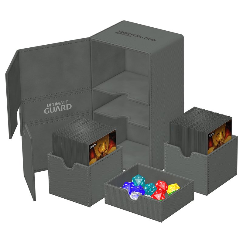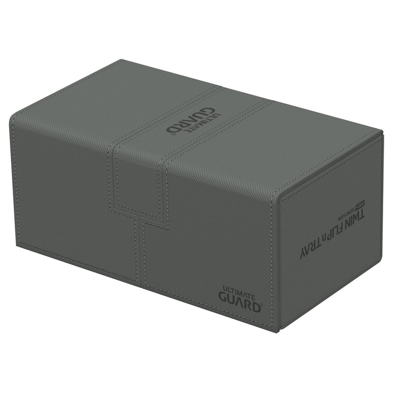 Ultimate Guard Flip 'n' Tray 200+, Deck Case for 200 Double-Sleeved TCG Cards +Dice Tray, Grey, Independent Magnetic Closure & Microfiber Inner Lining