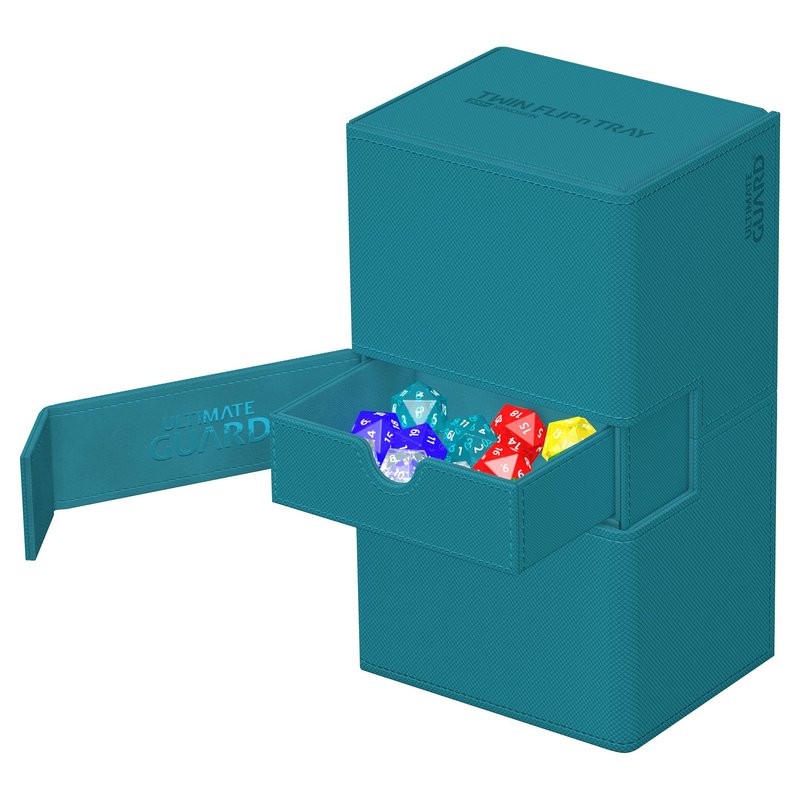 Ultimate Guard Flip 'n' Tray 200+, Deck Case for 200 Double-Sleeved TCG Cards +Dice Tray, Petrol, Independent Magnetic Closure & Microfiber Lining