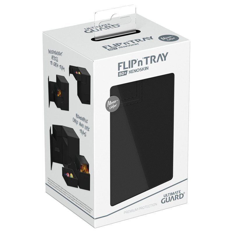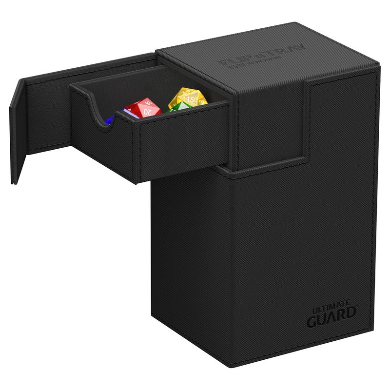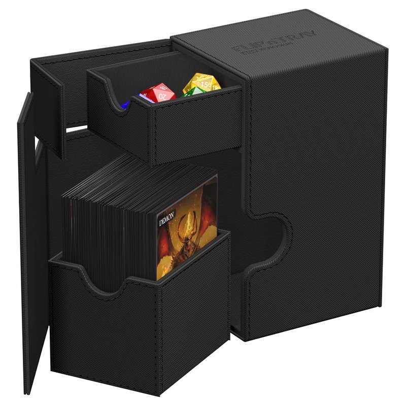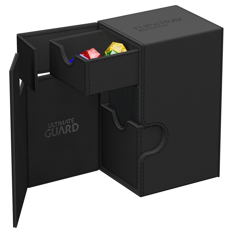 Ultimate Guard Flip 'n' Tray 80+, Deck Case for 80 Double-Sleeved TCG Cards + Dice Tray, Black, Independent Magnetic Closure & Microfiber Inner Lining