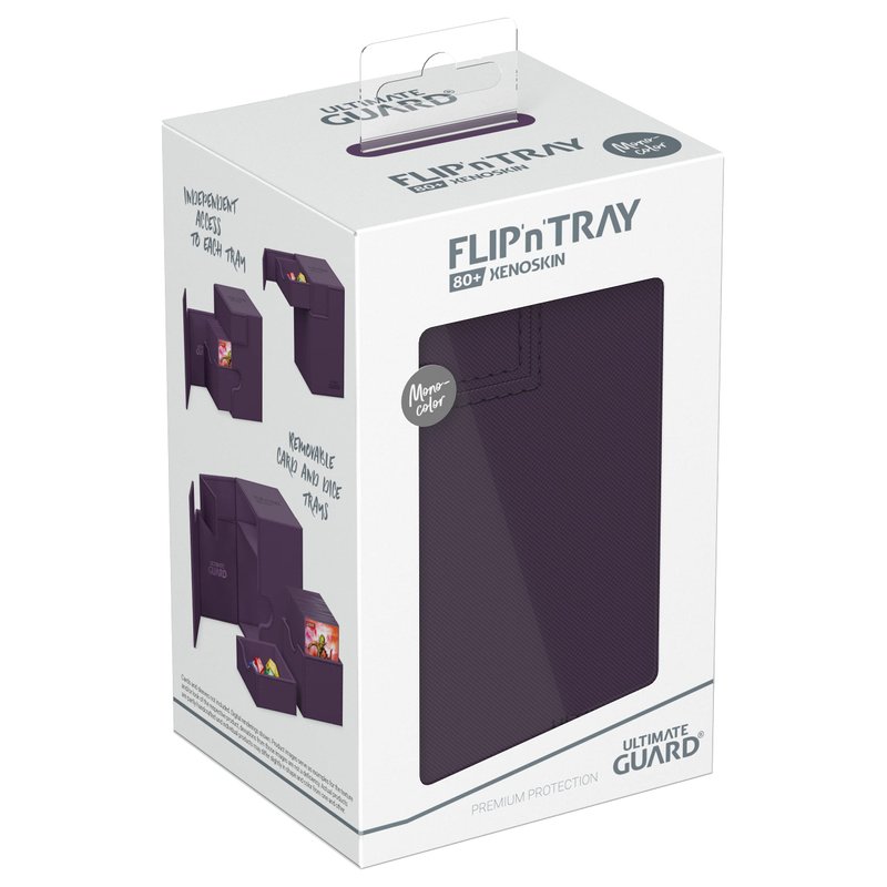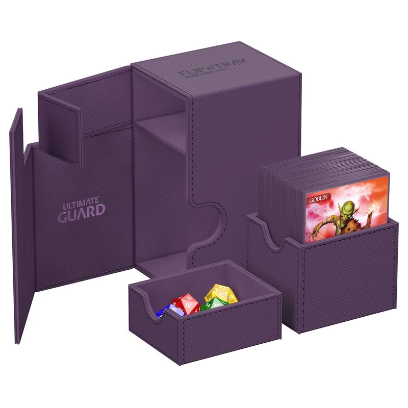 Ultimate Guard Flip 'n' Tray 80+, Deck Case for 80 Double-Sleeved TCG Cards +Dice Tray, Purple, Independent Magnetic Closure & Microfiber Inner Lining
