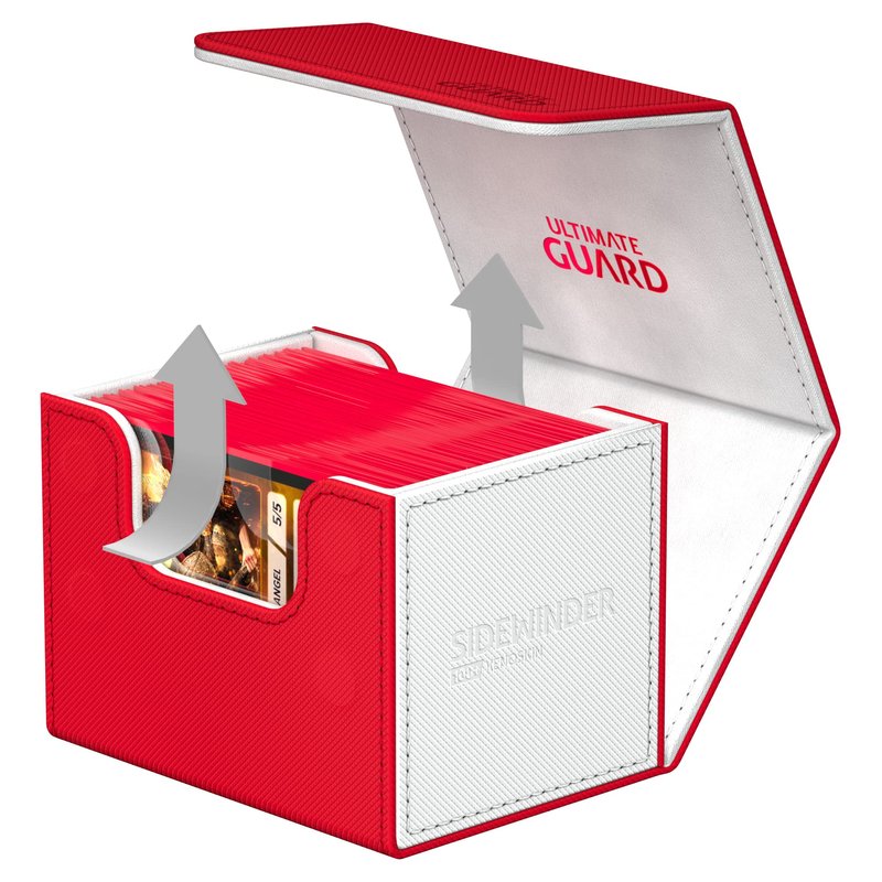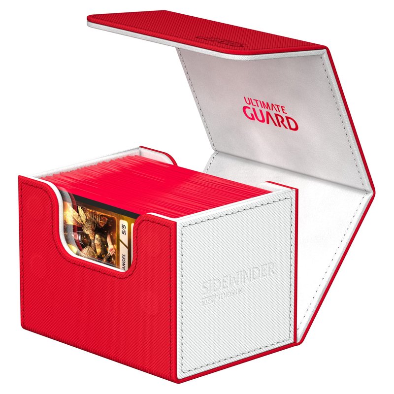 Ultimate Guard Sidewinder Synergy 100+, Deck Box for 100 Double-Sleeved TCG Cards, Red/White, Magnetic Closure & Microfiber Inner Lining