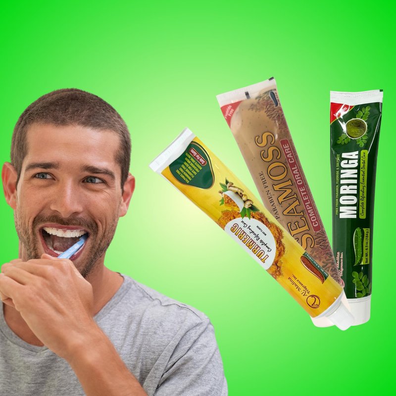 Experience the power of nature with our Ultimate Toothpaste Combo, crafted with Seamoss, Turmeric, and Moringa to give your teeth and gums the ultimate care they deserve. This fluoride-free, paraben-free, and sulphate-free formula is perfect for those with sensitive teeth, offering a gentle yet effective clean. Seamoss helps nourish your gums, Turmeric provides natural anti-inflammatory properties, while Moringa promotes overall oral health. Together, these ingredients work to leave your mouth feeling refreshed and revitalized. Say goodbye to harsh chemicals and hello to a soothing, plant-based formula that supports a healthy smile without irritation. Packaged in a convenient set of 3, this toothpaste is ideal for daily use, ensuring long-lasting freshness and protection for your teeth and gums. Make the switch to natural oral care today for a fresher, healthier mouth!