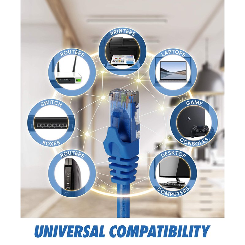 - PERFORMANCE - High performance Cat6 ethernet patch cables are designed with extremely well-matched components for outstanding uniform impedance and very low return loss, providing lower crosstalk, and a higher signal-to-noise ratio. They support frequencies of up to 500 MHz and are suitable for high-speed 10GBASE-T internet connection for LAN network applications such as PCs, servers, printers, routers, switch boxes, and more, while remaining fully backward compatible with your existing network.
