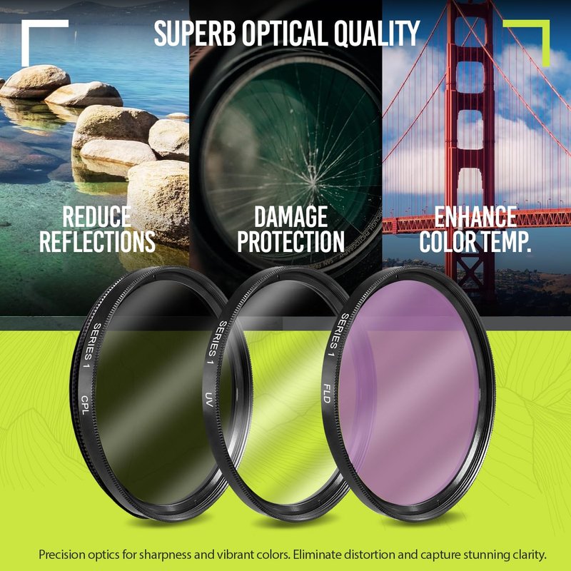 - Superior Build Quality - With a durable steel barrel design, our 58 mm lens filter kit uses multi coated anti-reflection glass. The high-grade 58mm UV filter component shields your lens against dust, scratches, and sun glare for durable usability. The close-up filters enable macro photography using a standard lens.