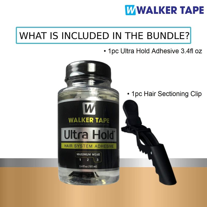 Ultra Hold Hair System Adhesive 3.4oz w/Hair Clip Bundle Saver Pack | Waterproof Invisible Long-Lasting | Front Bonding Weave Toupees Wigs Extensions Active Lace Glue | Super Bold Hold Lace Adhesive