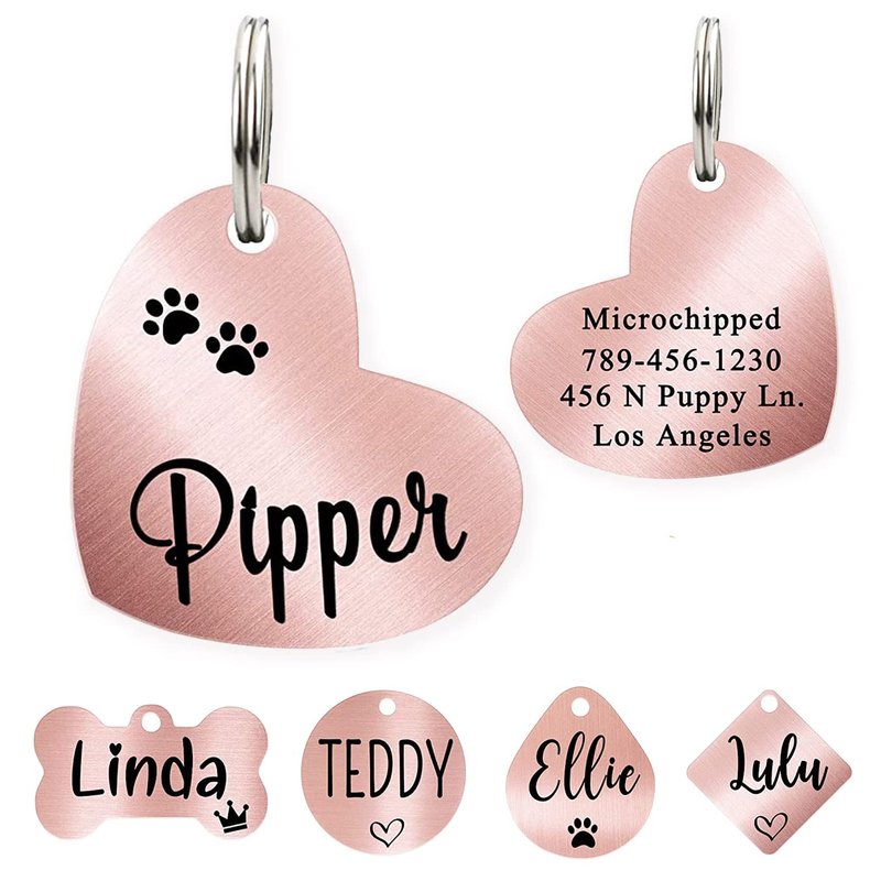 Ultra Joys Dog Tag, Custom Dog Tag, Personalized Pet ID Tag Brushed Stainless Steel Heart Dog Tag Rose Gold Small