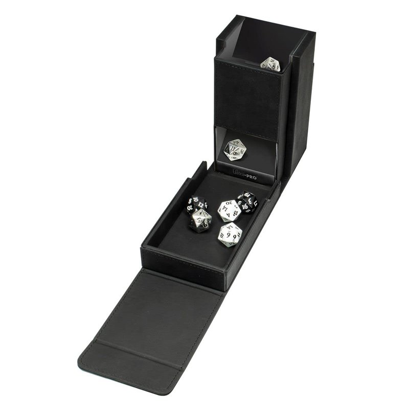 The Alcove Dice Tower is the ultimate tabletop gamer’s companion. Equipped with a soft suede leatherette exterior and durable core, you can store and roll dice all in a single 3.75 in. x 3.35 in. x 5.90 in. space. The lid flips down to release dice into a walled dice catching tray. Drop dice through 3 injection molded ramps to ensure durability and randomized rolls. When you are done playing, you can flip up the attached tray to store 40+ standard sized RPG dice and secure the dice tower shut with the strong magnetic closure that Ultra PRO’s Alcove accessories are famous for. (Dice not included)