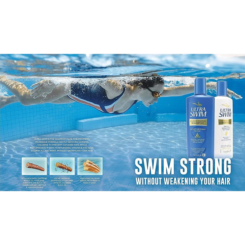 Ultra Swim Ultra Repair Conditioner: A rich, creamy formula packed with marine botanicals and essential nutrients to help reverse the damage caused by chlorine, salt, and sun exposure. It deeply hydrates and detangles, leaving your hair feeling soft, smooth, and manageable.