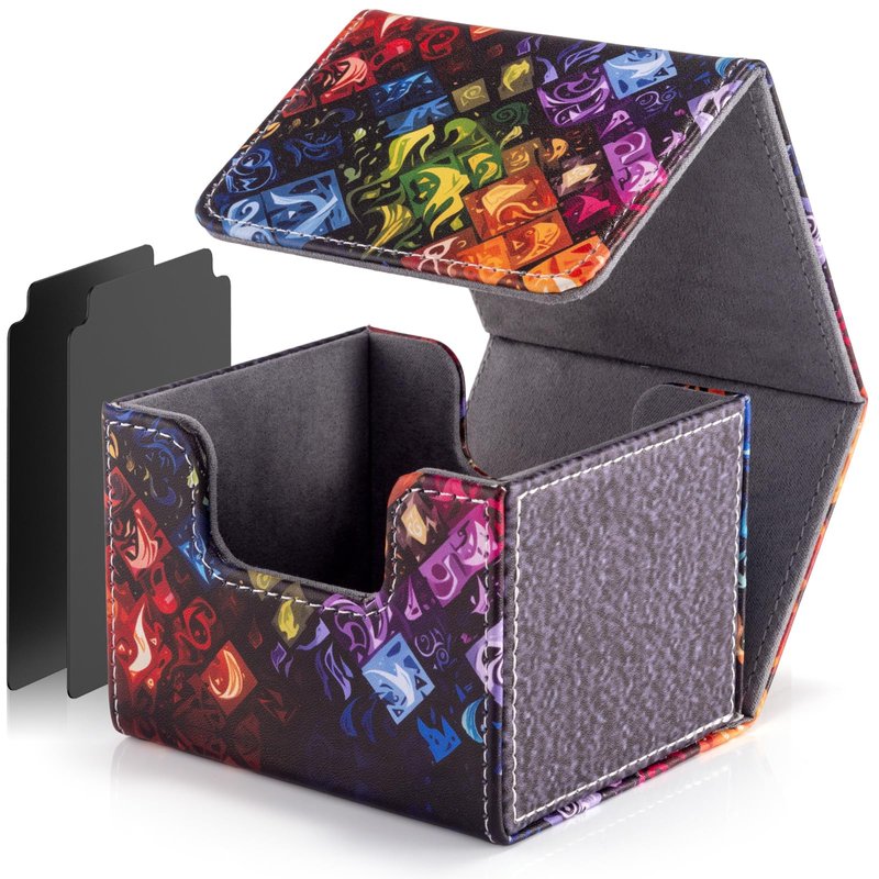 ULTRGEE Deck Box for MTG Cards - 2 Dividers, Card Storage Box Holds 110+ Single Sleeved Cards, Deck Boxes Compatible with TCG/OCG/YGO/PTCG (Ethereal Elemental Grid)
