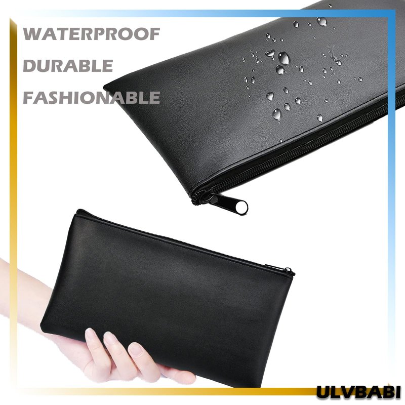 ULVBABI Money Bags With Zipper, 11x6.1 inch Security Deposit Zipper Pouch, Bank Bag, Cash Bag, Check Wallet, Cosmetics, Medicines and Travel Essentials Bags with 7 Zipper Extension Pulls (Black)