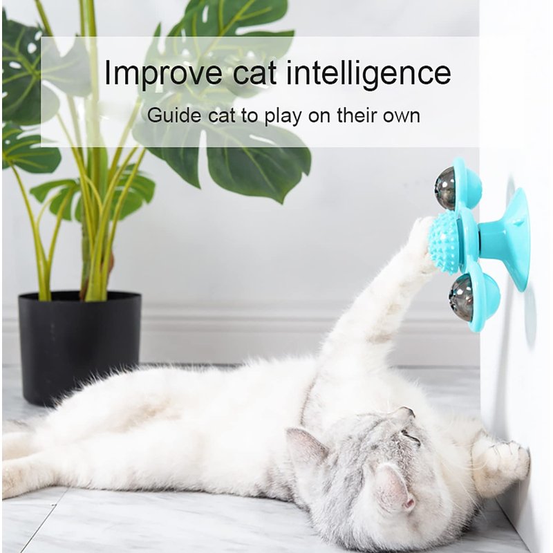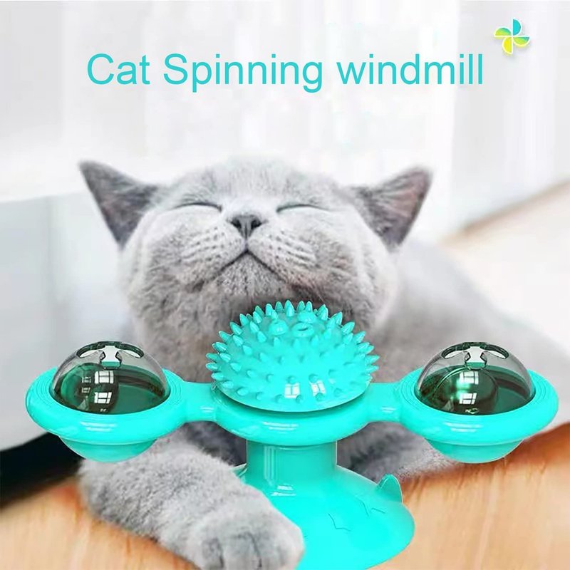 - Windmill cat toy with catnip ball or small bell and Soft Silicone Scratch Brush turntable rotating. interactive cat spinning toys with suction cup, perfect for cat grooming, massage playing.