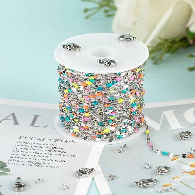 UMAOKANG 16.4 Feet Stainless Steel Chain for Jewelry Making Dainty Chain Necklace for Women Colorful Enamel Link Chain with Jump Rings and Lobster Clasps