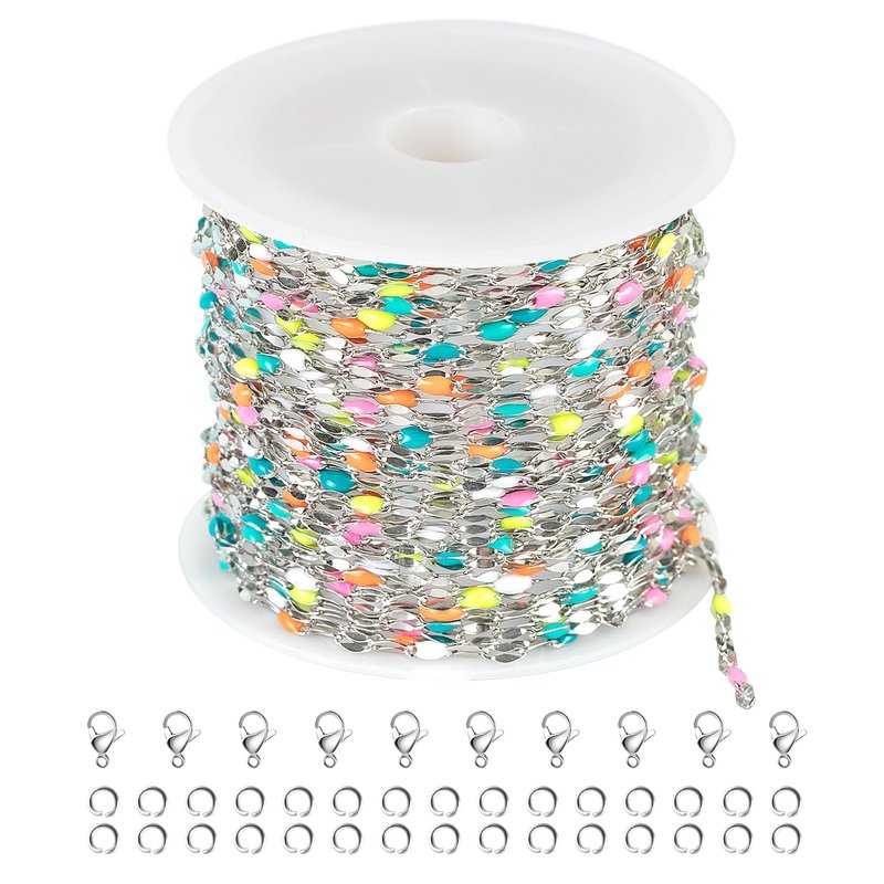 - Jewelry Chain Set- You can get 16.4 feet multicolored enamel cable jewelry chain on a spool, 30pcs jump rings and 10pcs lobster clasps, long chain for jewelry making with plenty of jewelry findings allow you to create many necklaces, bracelets, and other types of body jewelry.