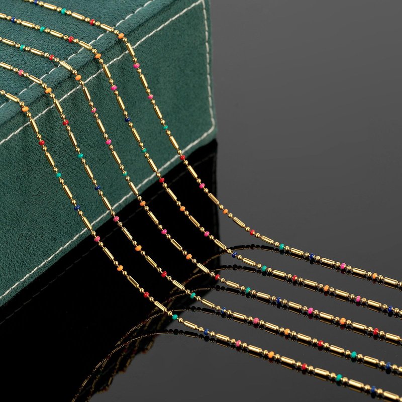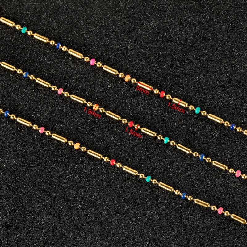 - Chain Link Size- The bar link chain size is about 5mm long and 1.5mm wide, the gold ball bead diameter is about 1.5mm, the colorful enamel bead diameter is about 1.9mm; the diameter of the jump ring is about 4mm; the lobster clasp length is about 10mm; the bead tips knot cover length is about 4mm. The dainty gold plated women necklace chain can be worn alone or matched with other types of chains and different charms pendants for layered necklaces and bracelets.