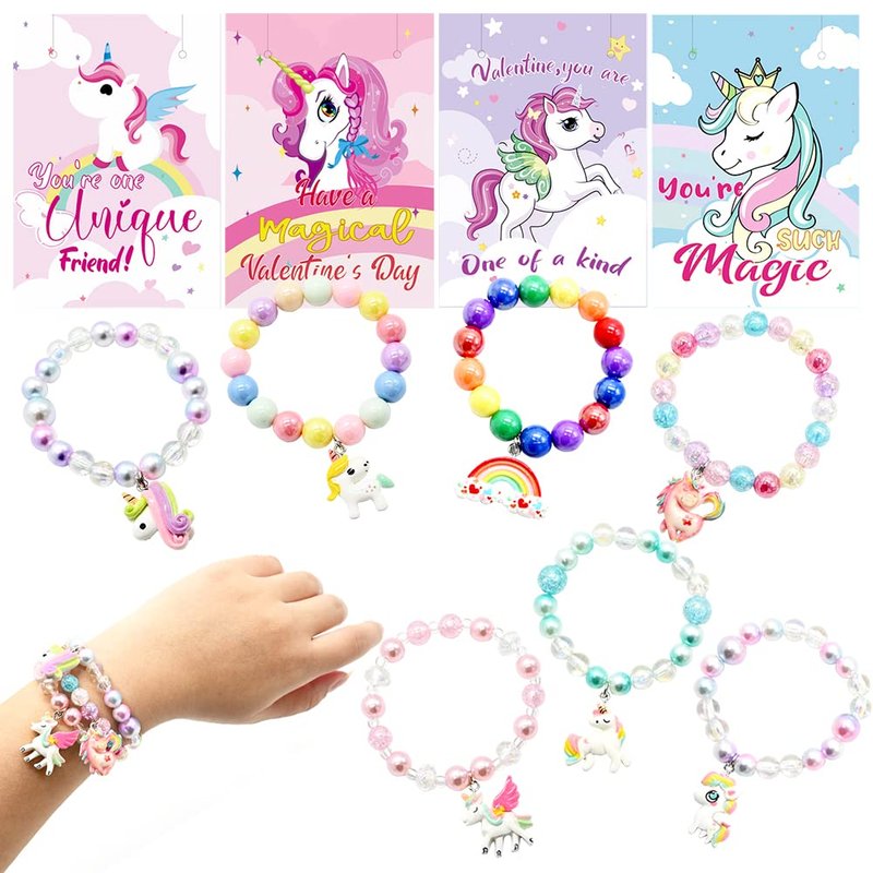 - IDEAL GIFT: Kids Valentine's Day Cards and Unicorn Bracelets are suitable for Kids Classroom Exchange Party Favors, Birthday Giveaways, Game Prizes.