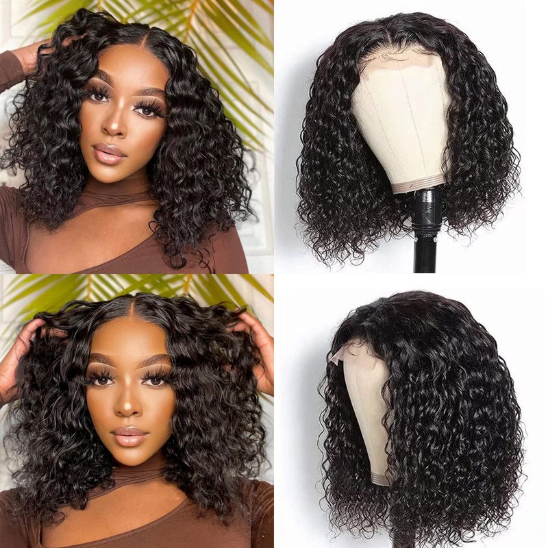 - 【Curly Bob Wig Human Hair】: 4×4 Curly Bob Lace Front Wig Human Hair Middle Part Bob Wig with Pre Plucked Naturtal Hairline