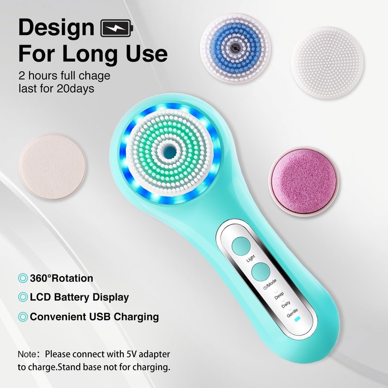 - USB Charging & Standing Base:USB charging cable is portable for carrying and charging. Charging for 2-3 hours can last up to 20 days.No more worrying about those battery-powered facial cleansing brush run out of battery after a few uses! It is a wonderful UNIQUE ideas gift for Christmas, Happy Birthdays, Mother’s Day and Valentine’s Day,Christmas.