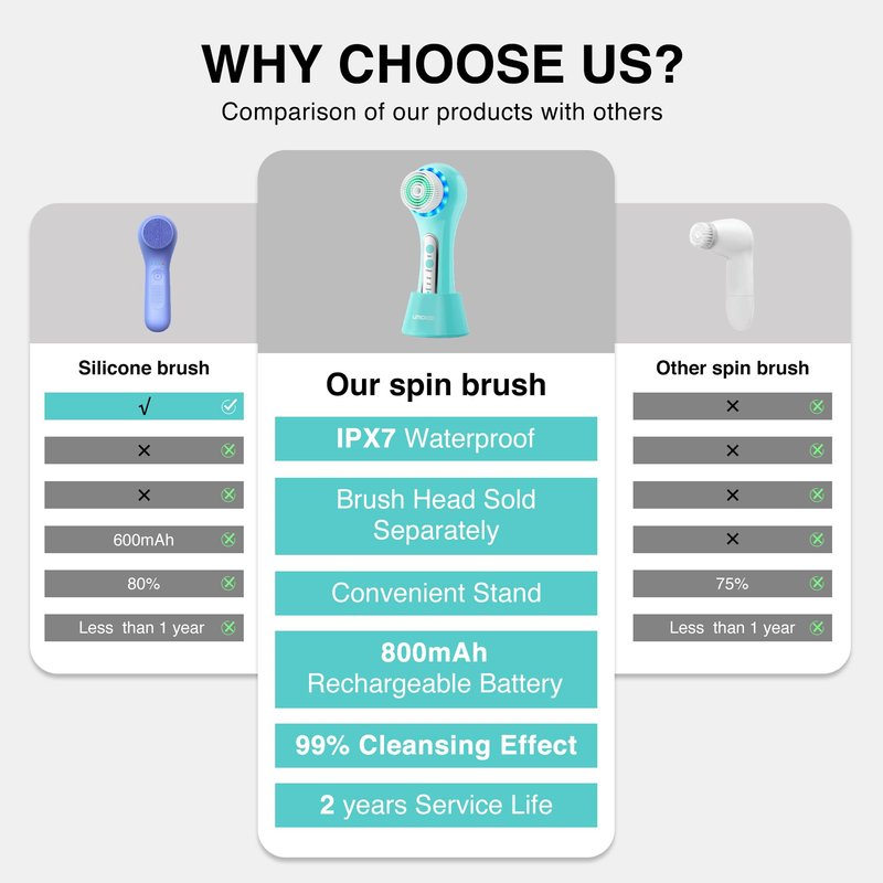 - IPX7 WATERPROOF & LONG-LIFE DESIGN FACE BRUSH: Our Umickoo facial cleansing brush is IPX7 waterproof capacity, safe to use in the bath or shower; rechargeable 1000 mAh battery, lasting 20 days of normal daily use with only 2 hours required to fully charge.This electric face scrubber suitable for all skin types and meet all your facial cleansing needs.