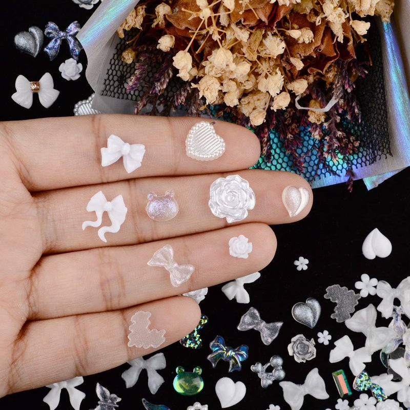 These 3d nails charms are designed in diverse shapes,including butterfly/bear/flower/bowknots, can be worn with different styles every day, making your nails look more exquisite and lovely.