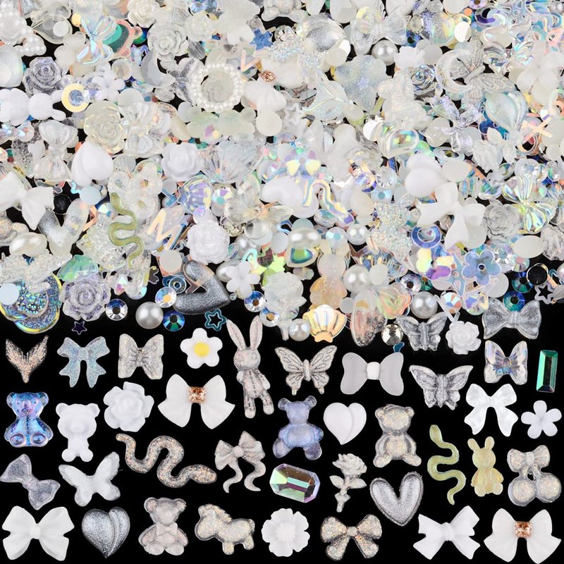 3D Nail Charms Acrylic Flowers Butterfly Bear Nail Art 3D Charms Designs, AB Crystal Rhinestones Set, Nail Art Rhinestones Multi Shapes, Nail Decal Jewelry Accessories Decoration DIY Crafting