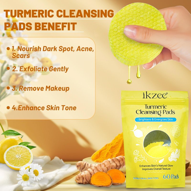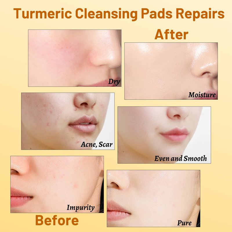 - 【Exfoliating Face Pads】Turmeric face cleansing pads infused rich turmeric extract and vitamin C, penetrate, exfoliate and nourish your skin, improve skin tone and texture. It also can be used as makeup remover.