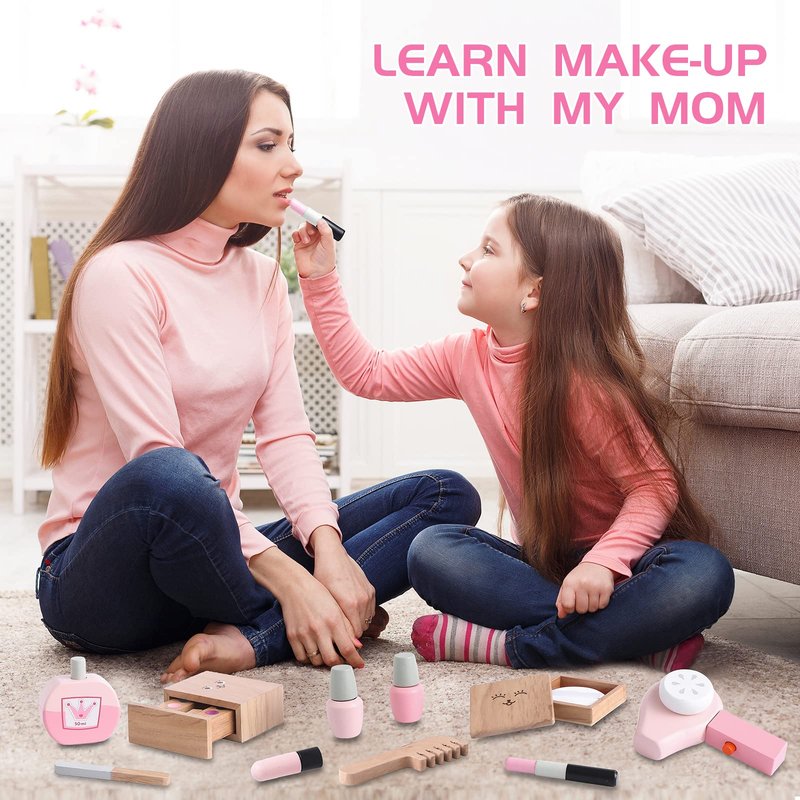 - 💄【HIGH QUALITY & DECORATION】Now your little girl can get ready just like mommy, Premium quality materials makes this toy beauty set long-lasting and durable, Each piece is made from 100% real wood
