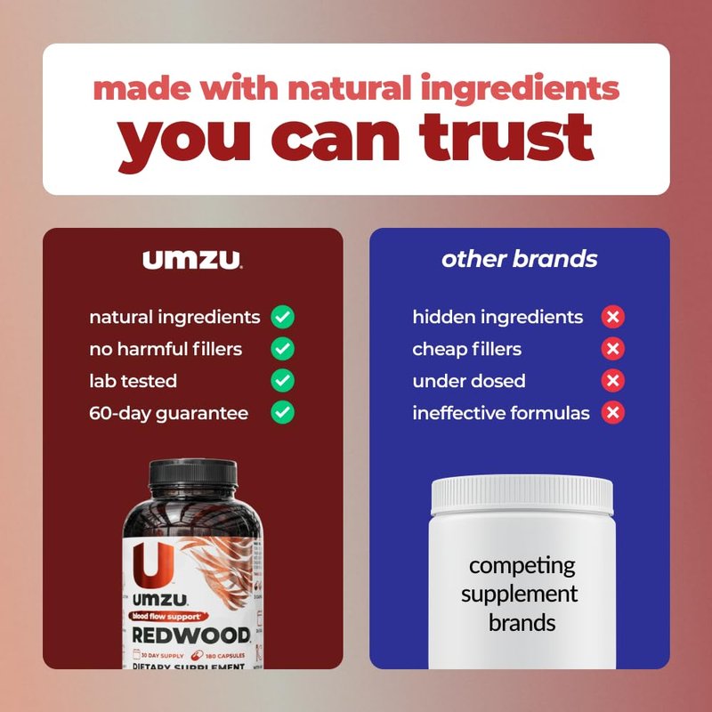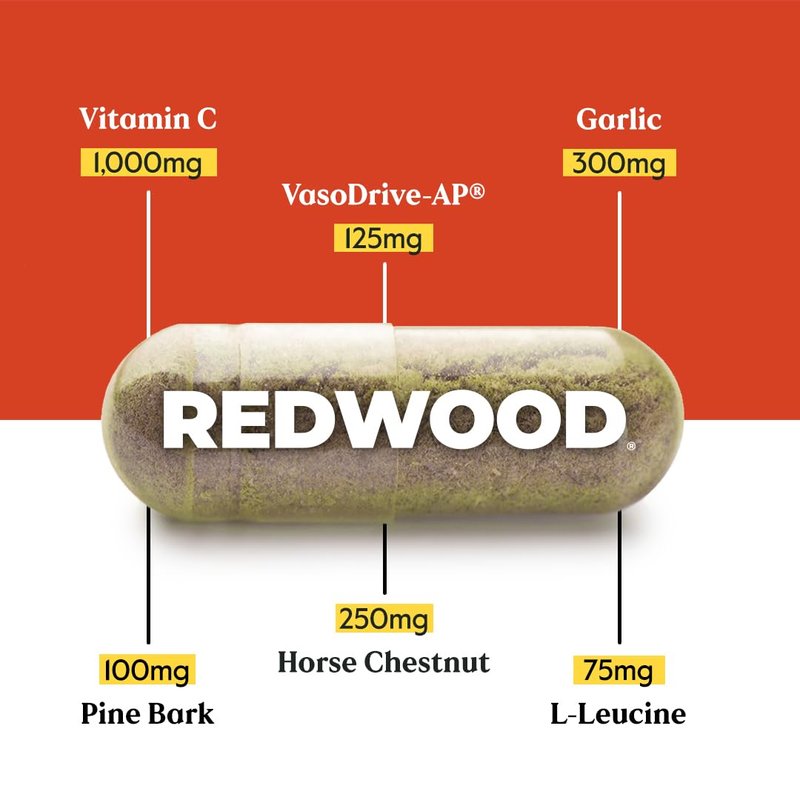 - HEALTHY CIRCULATION- The vitamins and minerals in Redwood work together to support optimal blood flow and circulation, helping deliver oxygen and nutrients efficiently.