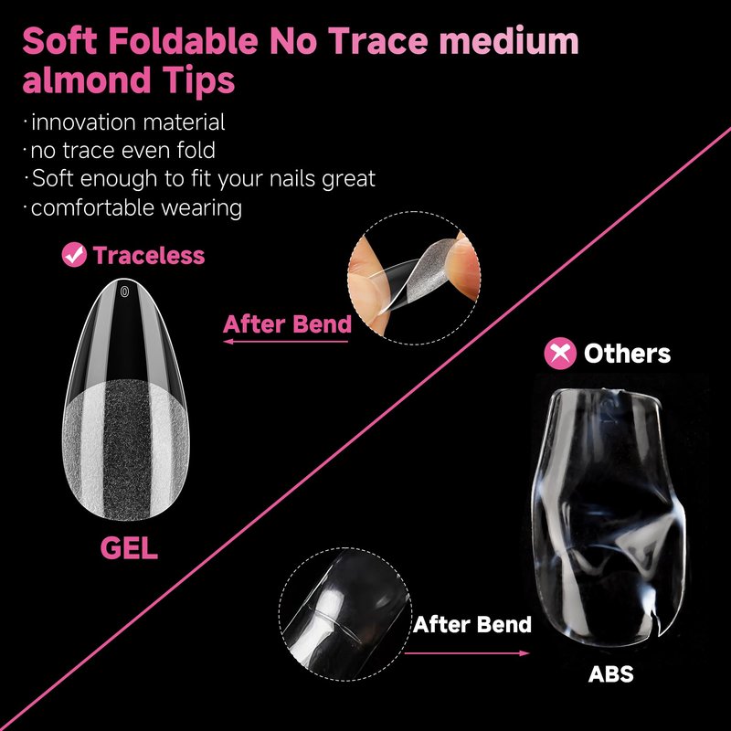 - ❤【Almond Nail Tips with No Trace】The clear almond nail tips are gelly soft tips and will make no trace even bend, you can more easily press, trim, paint flat false nails to make your dream nails shape. Real DIY manicure gel tips.