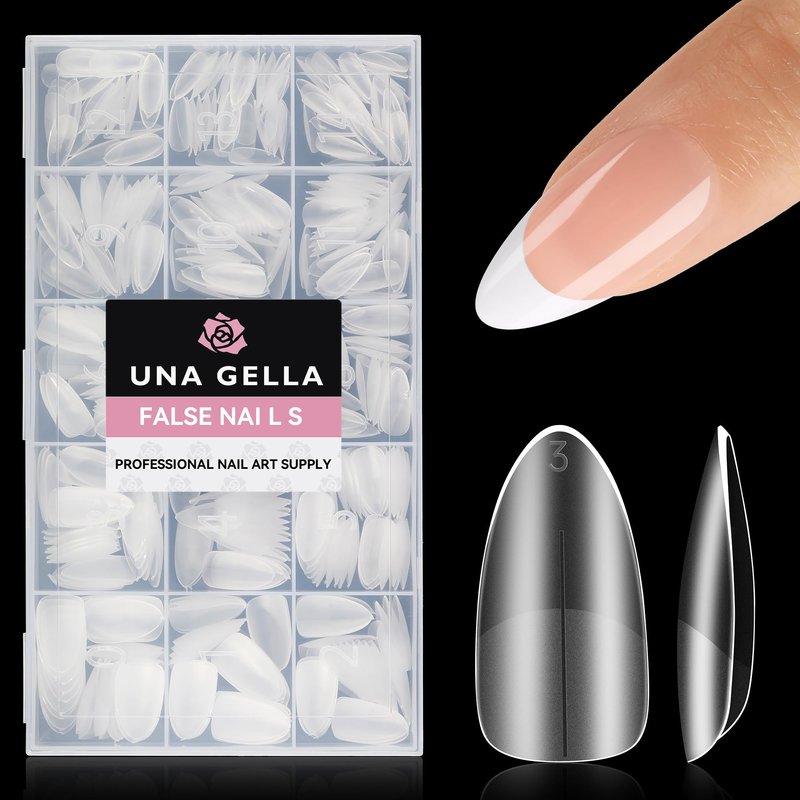 UNA GELLA Almond Nail Tips, 504Pcs Almond Gel X Nail Tips, 15 Sizes Full Matte Surface Nail Tips Clear Full Cover Soft Gel Nail Tips for Nail Extension DIY Salon