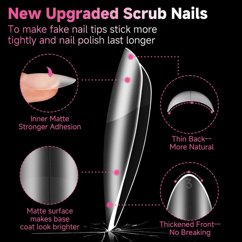 - ❤️【Natural Fit Effect】 The almond gel x nails feature “ Thin back edge, thick front edge”. The thinner back edge can make the full cover nail tips fit your nails better. The thickened front edge makes it not easy to break or bend, having longer lifespan.Just like your natural nails!