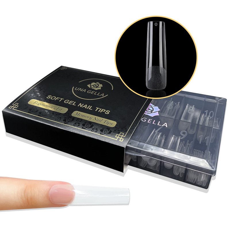 UNA GELLA Soft Gel Nail Tips Long Pre-file | 240 Square Gel Tips XXL | Full Cover No C Curve Extra Long Full Cover Tapered Square Nails Extension Home DIY Salon with Box