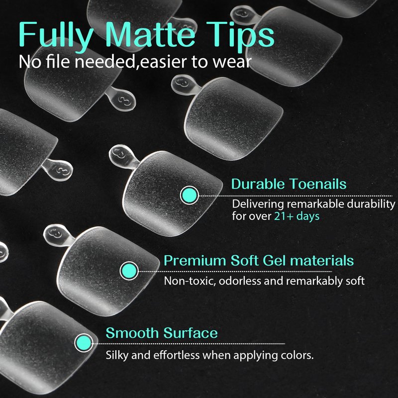 - ❤️ Matte Design Toe Nail Tips Long Lasting 21+ Days: The toenails are not needed file, so this matte design makes an excellent combanation with gel. let your toenail art show them more than 21 days!