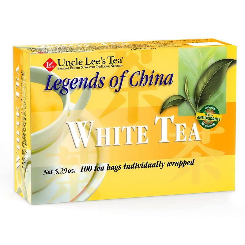 Uncle Lee’s Legends of China White Tea, 100% Natural Premium White Tea Bags, Light & Delicate Flavor, Use for Hot Tea, Cold Brew Tea or Iced Tea Beverages, 100 Tea Bags per Box