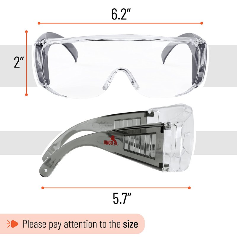 UNCO- Safety Goggles Over Glasses, Protective Goggles, Safety Goggles Anti Fog, Work, Safety Glasses Over Prescription