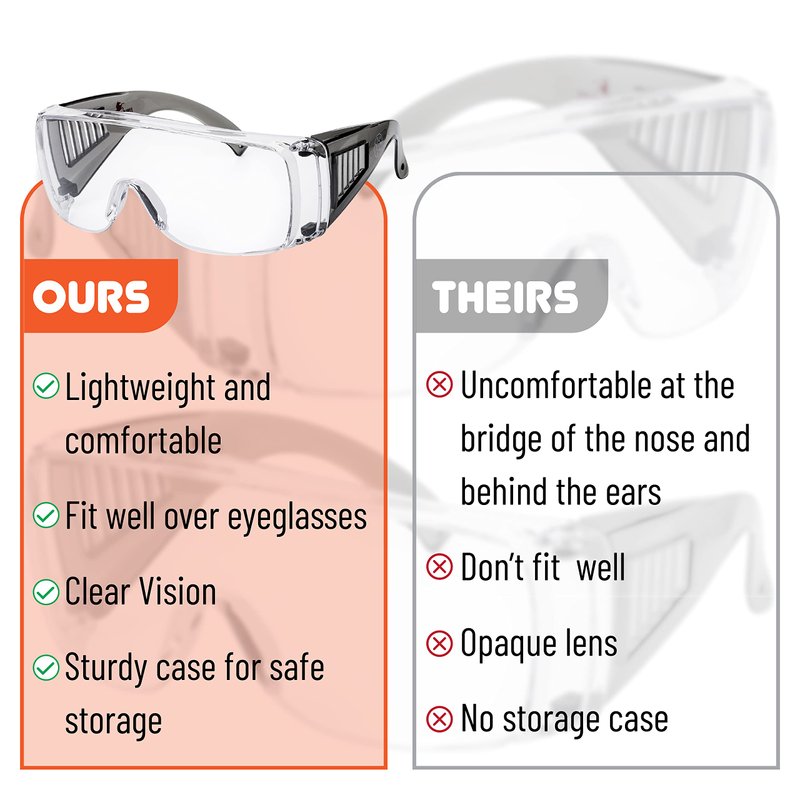 - Universal Over-Glasses Design: Skillfully designed to fit securely over most prescription glasses, these goggles provide the best of both worlds - unobstructed vision and unmatched eye protection