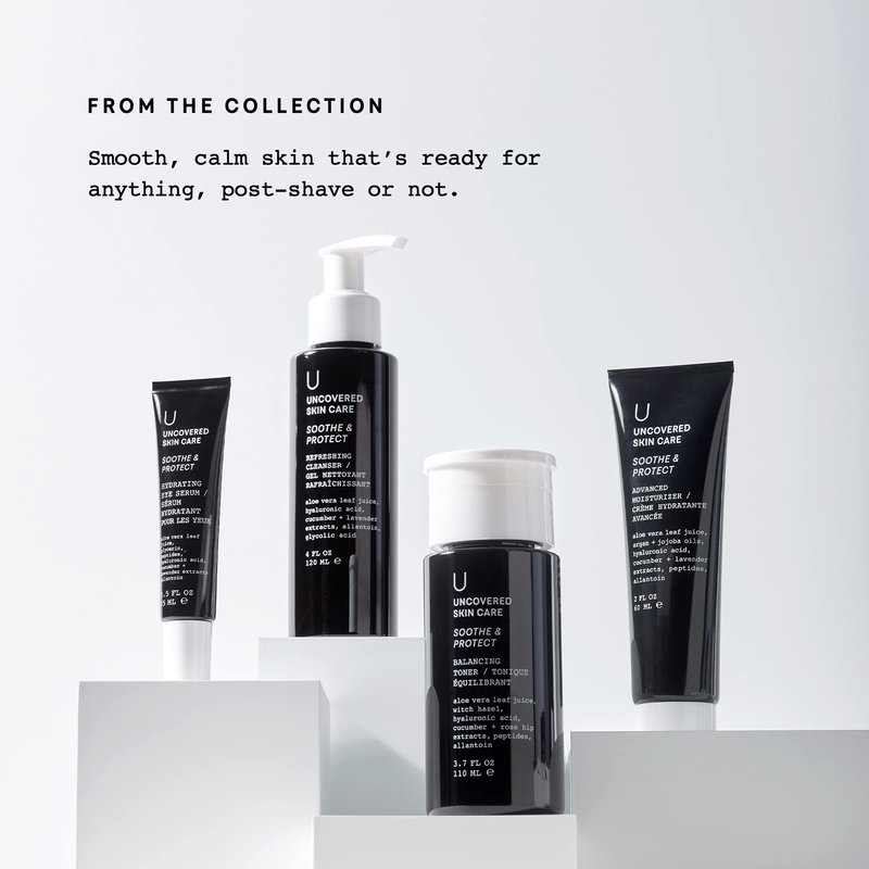 Live Alive. Live Uncovered. Inspired by a powerful sense of aliveness, the real people at Pure Romance have come together to create Uncovered's simple skin care products, daily essentials to enliven and nurture your skin. We aim to help you embrace your unique self and the skin you’re in –imperfections and all. With quality, must-have ingredients, our face care products are designed to clean, tone, moisturize, and protect the real skin on real people to develop an inclusive community living an empowered life. After all, sexy doesn’t start when the lights go out, it starts the moment the sun comes up. Meet Your New Routine. Healthy skin is happy skin. Care for yours with a collection that nourishes, soothes, and protects, while helping to reduce the visible signs of aging. Just like the name suggests, this collection is made for those who want smooth, calm skin that’s ready for anything —post-shave or not. While the Soothe & Protect collection provides a balanced 4-step routine all on it's own, Uncovered Skin Care face products can add a whole new dimension to any existing routine. Nothing to Hide. Our mission is quality skin care with quality ingredients. That’s why our products are made with all the ingredients we love and none of the ones we don’t. You won’t find sulfates (SLS/SLES), mineral oil, parabens, talc, PEGs, phthalates, and added colors or fragrances anywhere. We use exceptional essential oils, nutrient-rich extracts derived from a variety of plants, and synthetics safe for even the most sensitive skin.