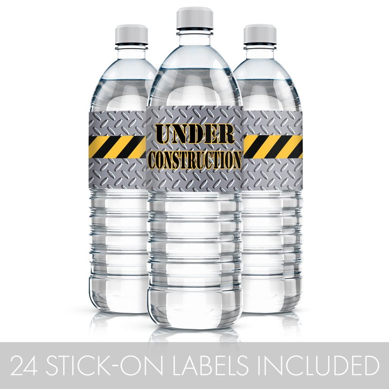 Under Construction Party Water Bottle Labels, Construction Birthday Decorations - 24 Stickers
