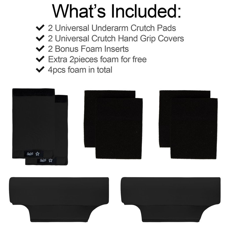 - ●ESSENTIAL CRUTCH PADS: A set consist of 2 parts: 2 underarm crutch pads and 2 hand gripe covers. We offer EXTRA 2 foam for free to replace. A must-have accessory for anyone who uses crutches!