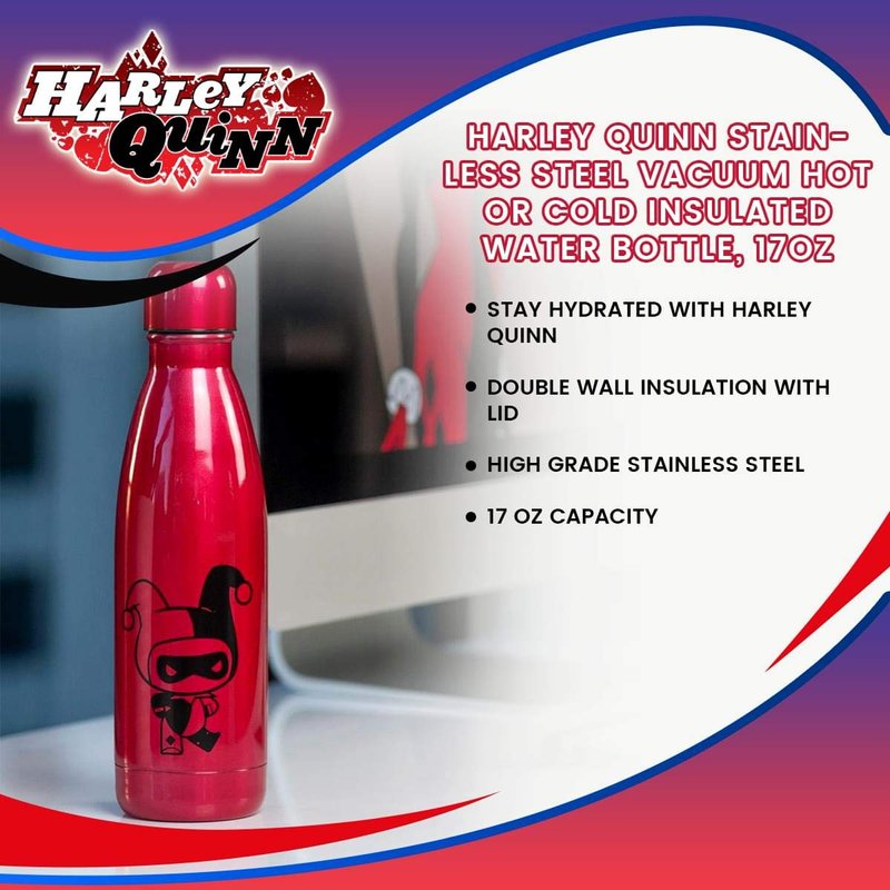 Underground Toys Harley Quinn Stainless Steel Vacuum Hot or Cold Insulated Water Bottle, 17oz
