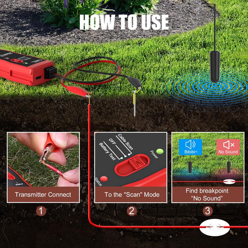 1. Locating & tracking buried and hidden wires. No more calls, no more cost, find and fix it by yourself.