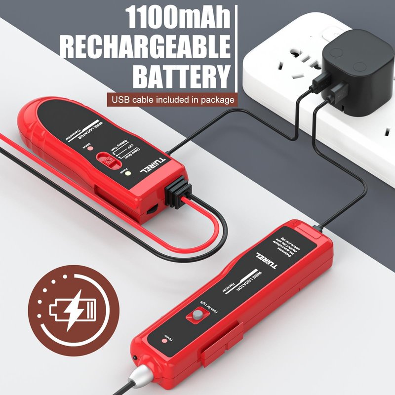 - 🏆【STRONG IN BOTH PROFESSIONAL AND PRACTICALITY】 This underground cable locator circuit breaker finder is highly practical and can track wires and cables up to 3-4 feet deep and 2000 feet in length. Both transmitter and receiver are powered by 3.7V rechargeable lithium-ion batteries. Underground wire tracer takes 4 hours to be fully charged and can last up to 4 hours. The underground locator wire tracer comes with a USB cable, so no additional purchase is required.
