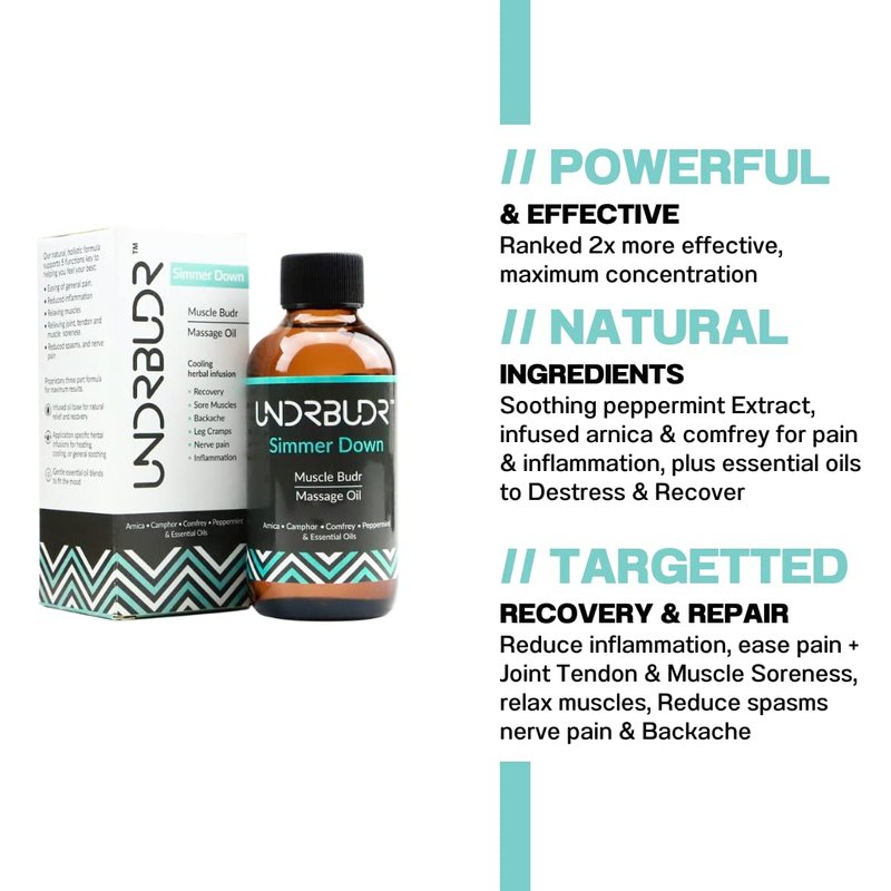 UNDRBUDR Recovery Muscle Rub, Post Activity Repair and Recovery with Arnica, Comfrey, & Essential Oils, 4oz Oil