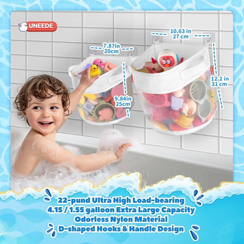 UNEEDE 2Pcak Bath Toy Organizer,Big Capacity Bathtub Toy Storage Organizer,Quick Access Bath Toy Holder For Bathtub,Baby Organizer And Storage,Quick Dry Baby Bath Toy Storage For Tub,Mesh Shower Caddy