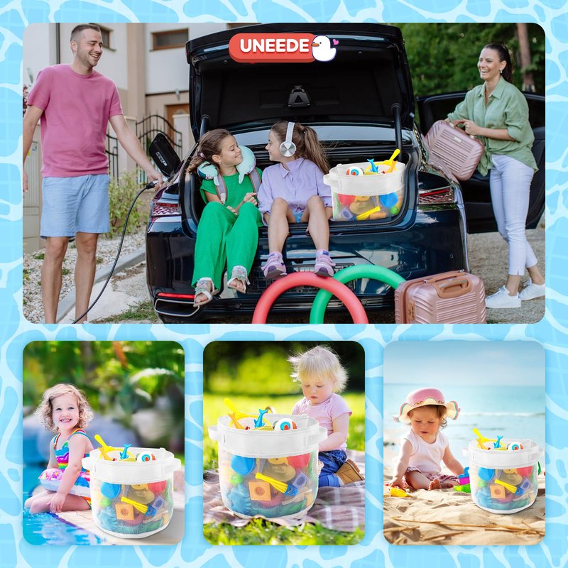 - 【UNEEDE Bath Toy Storage Design】Here you would see is our UNEEDE most successful 4.15 + 1.55 gallon large bathroom toy storage.We made it We made it can not only hang on the wall, but also stand on its own on the floor,which means you could carry it outside with your toys.