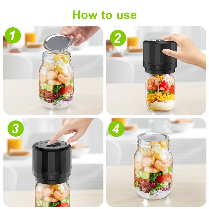 - Long-term Food Fresh Saver - Use in confidence, our hand vacuum sealer for jars is made of ABS plastic and food-grade silicone, you can use to extract the air from your mason jars.Our mason jar electric vacuum sealer can extend freshness, and reduce food waste.