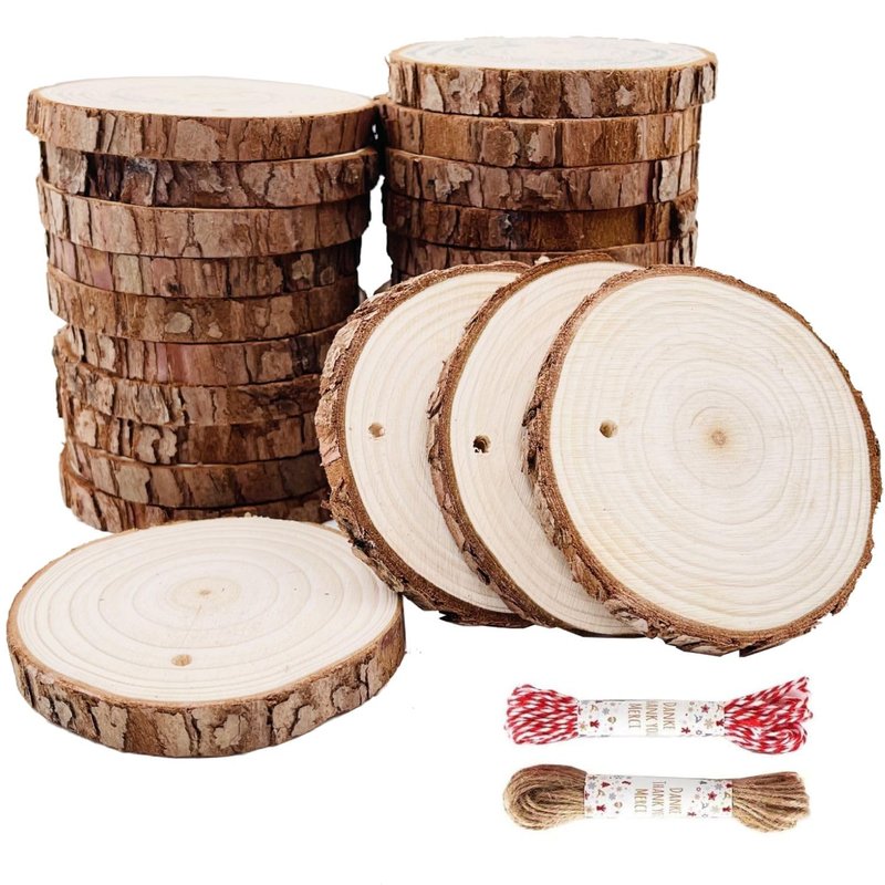 - EASY TO USE : Easy to write or paint. Every slice was drilled with small hole and 33 feet complimentary Natrual Jute Twine for you to hang easily.