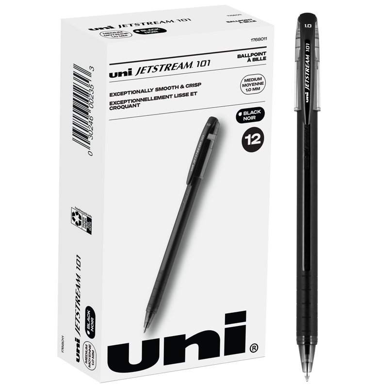 Uniball Jetstream 101 12 Pack, 1.0mm Medium Black, Wirecutter Best Pen, Ballpoint Pens, Ballpoint Ink Pens | Office Supplies, Ballpoint Pen, Colored Pens, Fine Point, Smooth Writing Pens