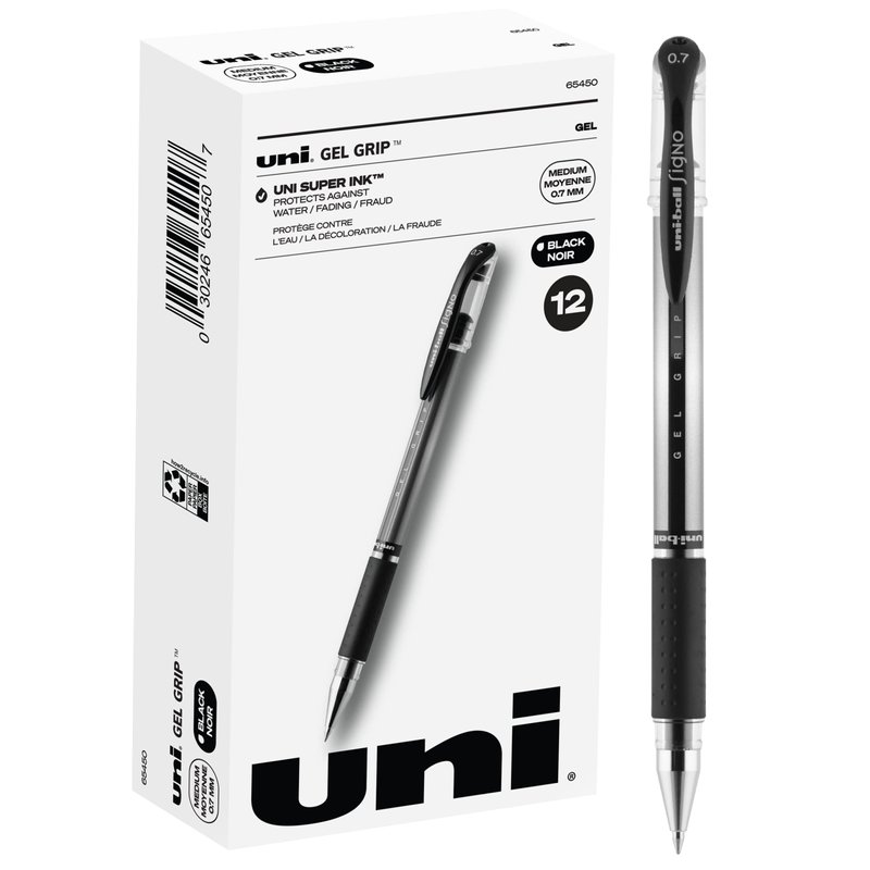 Uniball Signo Gel Grip Stick Gel Pen, 12 Black Pens, 0.7mm Medium Point Gel Pens| Office Supplies, Ink Pens, Colored Pens, Fine Point, Smooth Writing Pens, Ballpoint Pens
