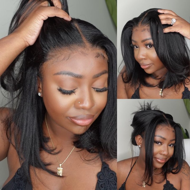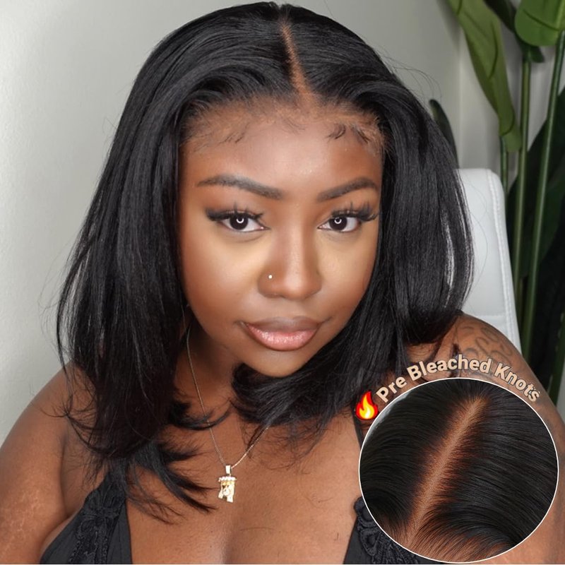 - 2. Upgrade invisible knots Glueless Wig: Yaki Straight Bob Wigs Human Hair 7X5 hd lace wig human hair wig Pre bleached clean invisible knots more natural than tiny lace. Say Goodbye to Poorly Designed Unnatural Wig.