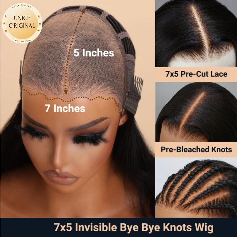 - 3. Upgrade 7x5 Big Lace: UNice 7x5 bye bye knots human hair wig Upgrade 6x4 lace to 7x5 Larger HD Lace Promises Versatile Styling Choices.